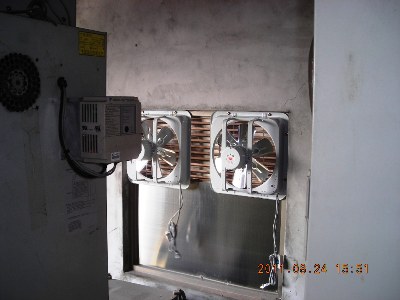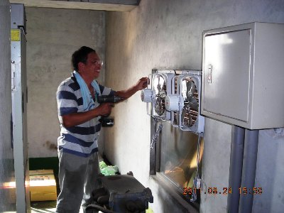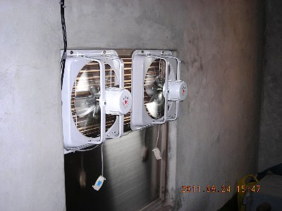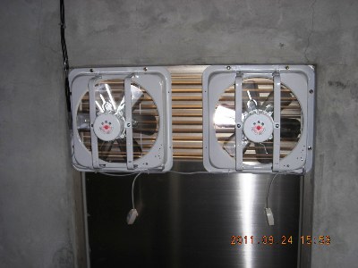 炎熱的夏天,電梯機房無法散熱容易造成設備不穩,管委會請珍旺公司至社區安裝排風扇工程